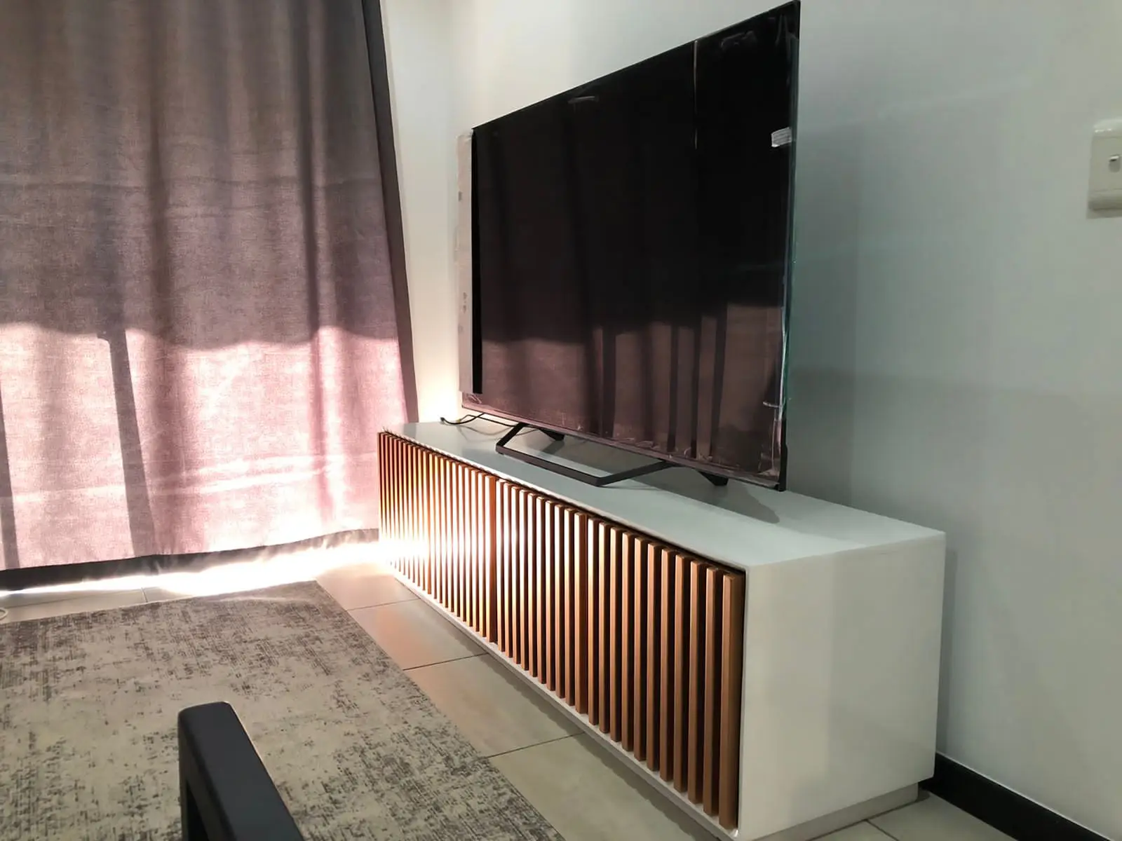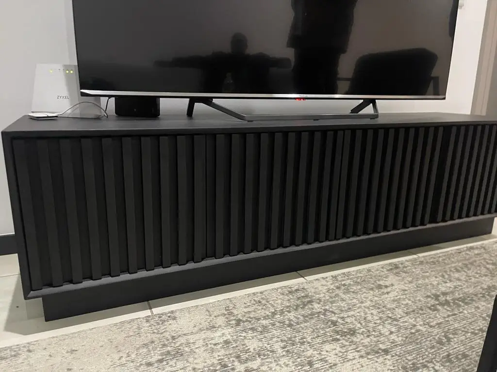 The Takalani TV Stand is the perfect addition to any entertainment room. Crafted from high-quality materials, it features a sleek and modern design that will complement any decor. The stand is designed to accommodate most flat-screen TVs up to 55 inches and includes two spacious shelves for storing all of your media components. With its sturdy construction and easy-to-assemble design, the Takalani TV Stand is a must-have for any home entertainment setup. Upgrade your viewing experience today with the Takalani TV Stand.